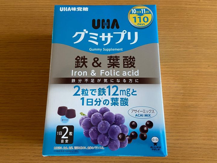 キャンディやグミなどを中心に販売しているUHA味覚糖の「グミサプリ鉄&葉酸」(購入時:1980円)を紹介します。