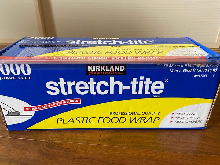 日用品からは「ストレッチタイトフードラップ3000ft」(購入時:1,858円)。え、これがラップなの?と疑ってしまうほどの迫力で、約900mもある超巨大なラップは持つとずっしり約4kgもあります。