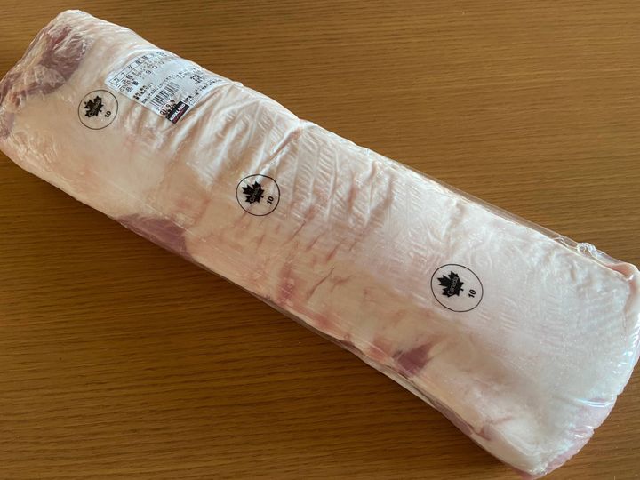 業者向けのような巨大なお肉「カナダ産三元豚ボンレスロインVP」(購入時:3,387円)は驚異の4kg超えの塊で販売されています。