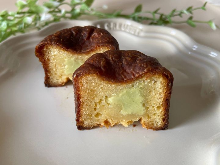 中央にはピスタチオクリームが。なめからでふんわりピスタチオの香ばしい香り。カヌレの生地とピスタチオクリームの味わいが絶妙にマッチして上品でおいしいスイーツでした。