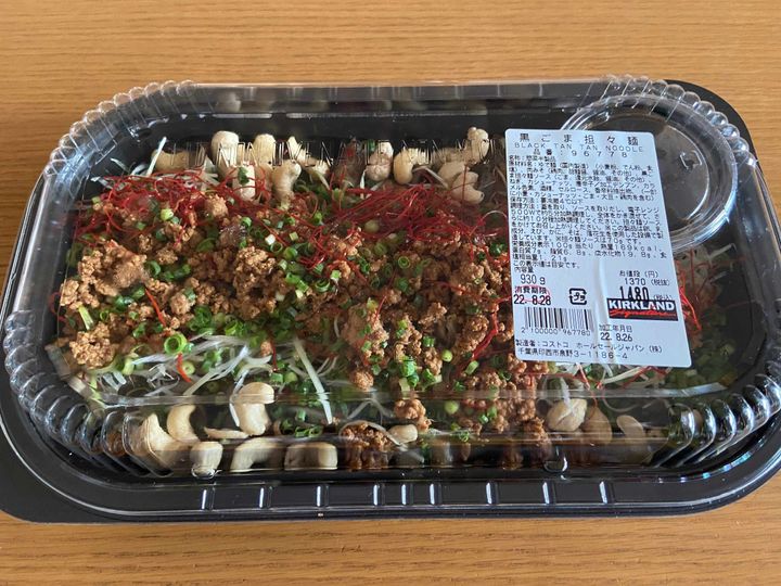 コストコデリコーナーの新商品「黒ごま担々麺」(購入時:1480円)。担々麺といえば白ごまのイメージですがこちらは珍しい黒ごま使用です。