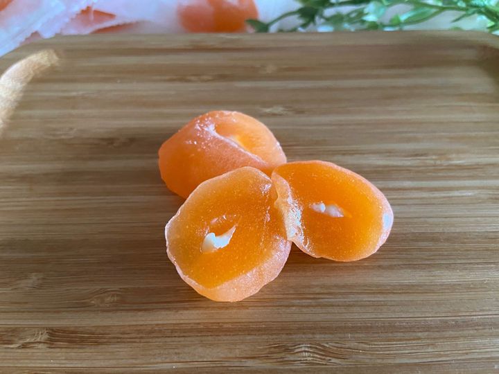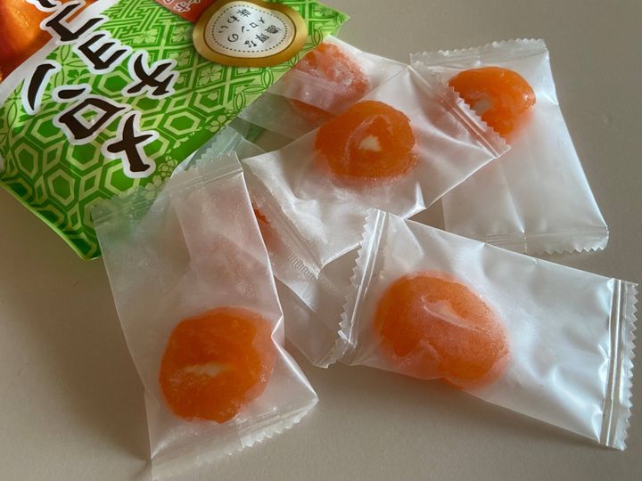 開封すると中には個包装のメロンチョコもち!オレンジ色が鮮やかで、食べる前から期待大!