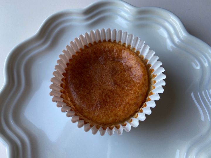 小ぶりですが手に持ってみるとずっしり。綺麗な焼き色がついたチーズケーキです。
