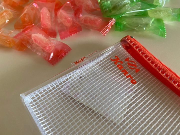 筆者がこの商品を知ったきっかけは、娘の誕生日に「クリアのペンケースが欲しい!」というリクエストがあったから。もともと筆者もシンプルな文房具が好きなので気になっていたアイテムですが、カンロ飴やピュレグミでおなじみのカンロとのコラボ商品があるとのことで、注目してみました。