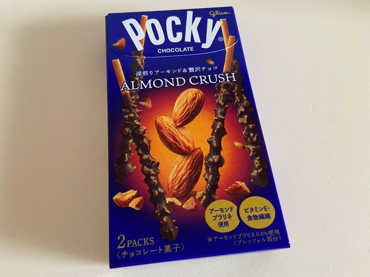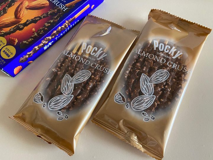 つづいてはこちらも大人気の「アーモンドクラッシュポッキー」(購入時:158円)。アーモンドの風味とカリッザクッとした食感が香ばしい、ファンも多いお菓子です。