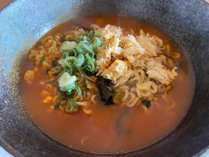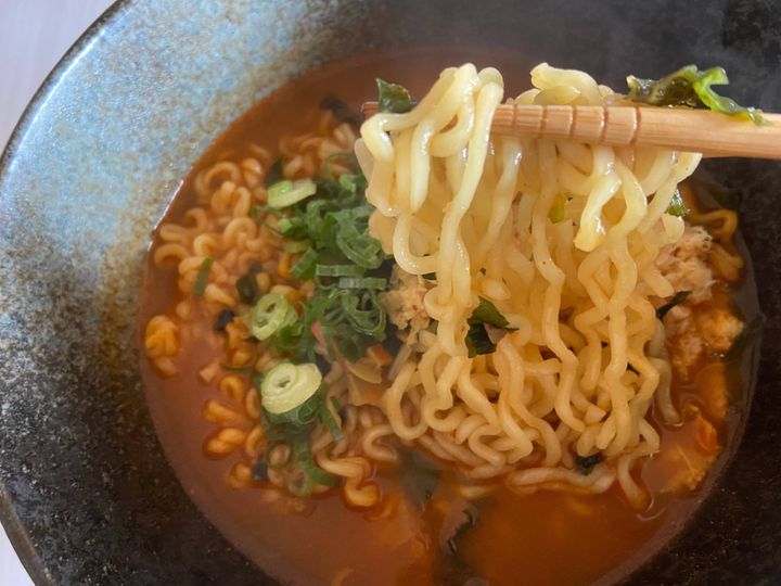 ほどよい辛さにしっかり海鮮の出汁が効いて、人気があるのも納得な美味しいラーメンでした。平日のひとりランチにパッと作れる袋麺があると忙しい時や手抜きしたい時にも重宝します。