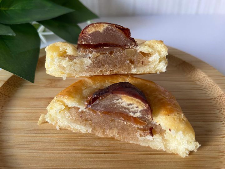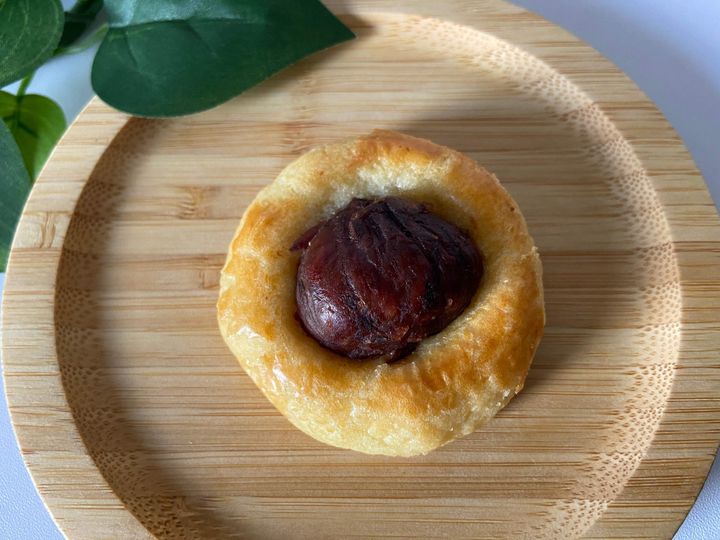 パイ生地の中には栗あんがたっぷり。しっとりとしたパイにやさしい甘さの栗あんがとっても上品でおいしい!丸ごとのった渋川栗が贅沢でまさに栗づくし。栗好きな方にはたまらない一品です。