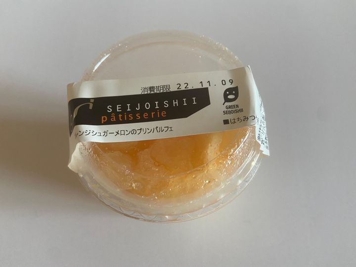 成城石井のスイーツコーナーで見つけた「オレンジシュガーメロンのプリンパルフェ」(購入時:323円)。