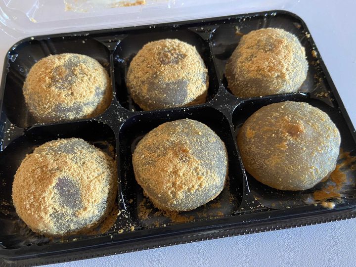 北海道産の小豆を使用した甘さ控えめのこしあんをわらび餅で包み、きな粉をまぶしたとのこと。