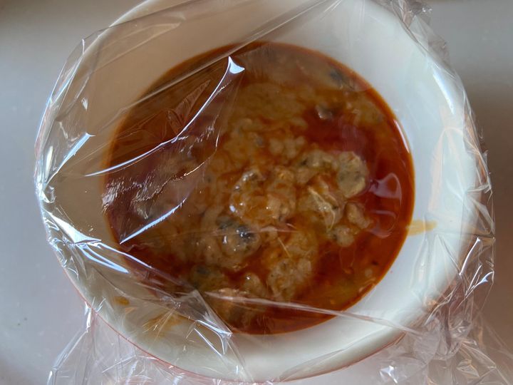 熱湯にパウチを入れて約5分温めるか、耐熱容器に移してラップをかけて電子レンジ500wで約2分加熱、です。