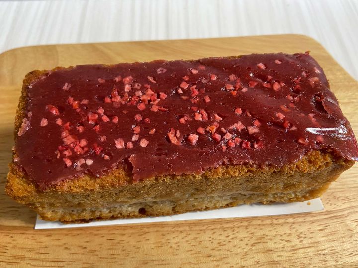 パウンドケーキの表面にたっぷりと塗られた苺ジャムが色鮮やかでとっても華やか!