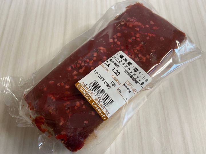 1/13(金)より発売の新商品「苺づくしのしっとりパウンドケーキ」(購入時:1,070円)。成城石井のスイーツコーナーで販売されています。