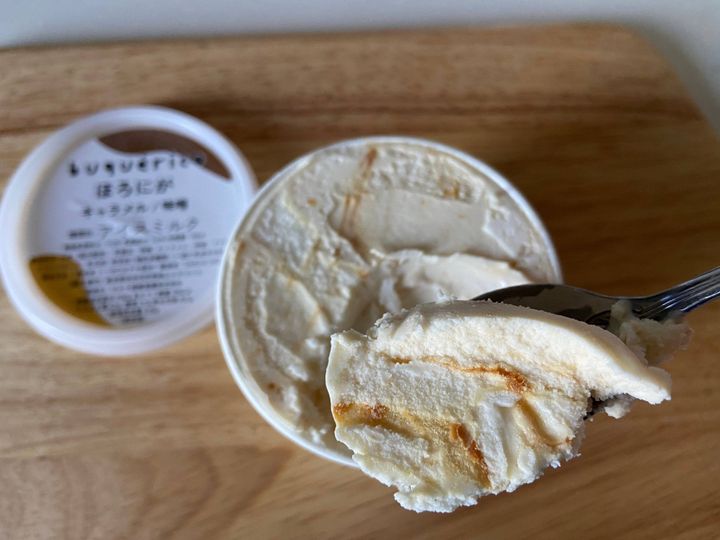 ジェラートに味噌って合うの?と初めての組み合わせにとまどいましたが、食べてみるととってもおいしい!北軽井沢産地限定牛乳と、甘麴味噌をプラスして作られていて、味噌の塩気がまろやかなミルク味に絶妙に合います。