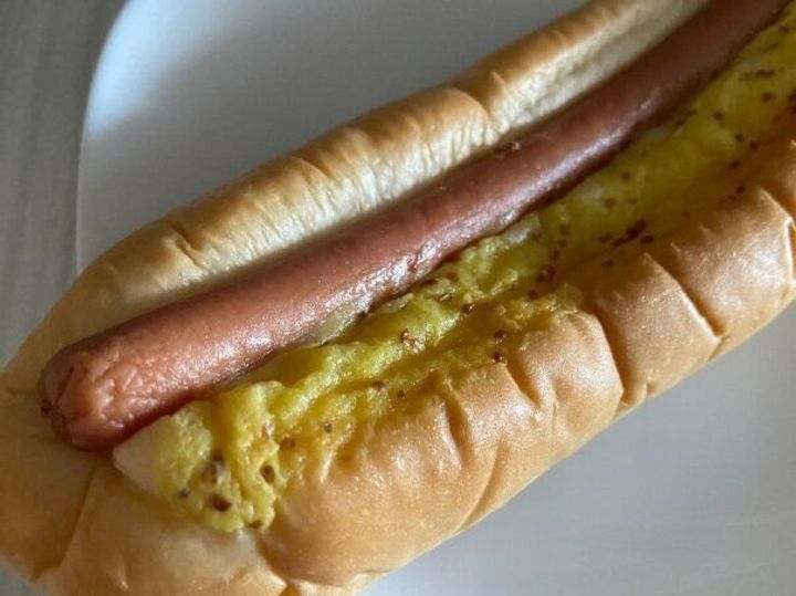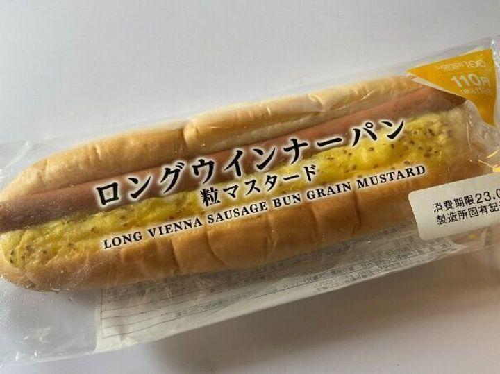 しっかりパンの端っこまで、むしろはみ出そうな勢いのロングウインナーが存在感大!パンはふんわり、ほどよい酸味の粒マスタードがいいアクセントになっています。