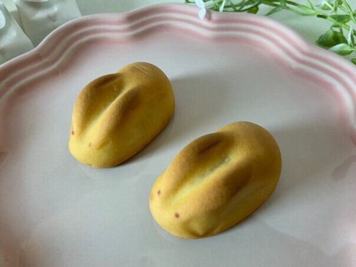 筆者はこのお菓子は知らなかったので初めて見ましたが、ちょこんとしたうさぎのフォルムがとってもかわいい見た目にも癒されるおまんじゅうです。