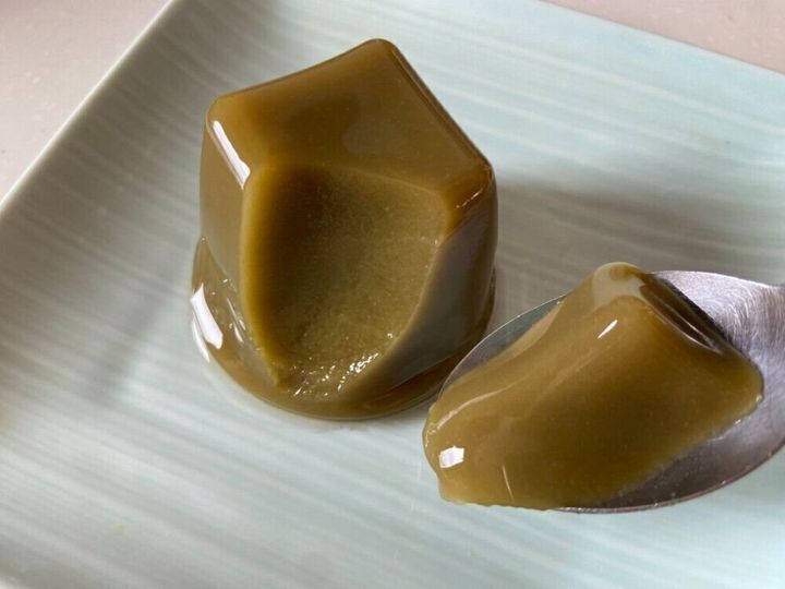 宇治抹茶と西尾の抹茶の2種類の抹茶をブレンドして使用し、砂糖と寒天をゆっくりと混ぜ合わせて滑らかな食感に仕上げられているとのこと。