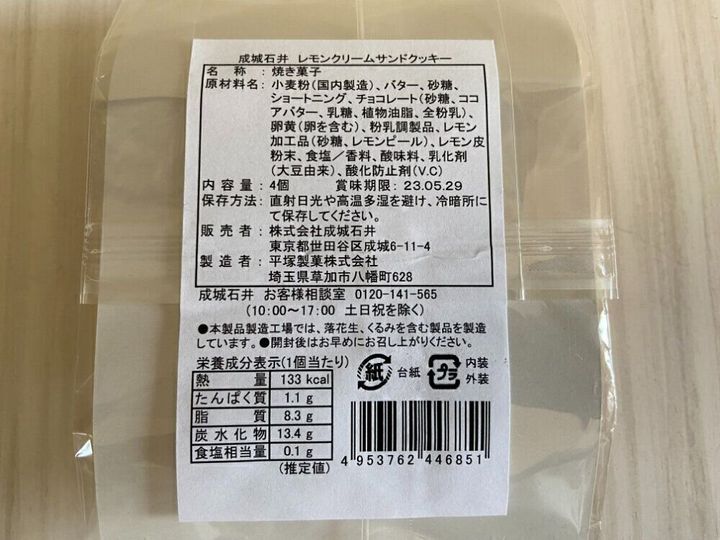 今年の3月末に新登場のクッキーがとてもおいしかったので紹介します。「レモンクリームサンドクッキー」(購入時:746円)です。