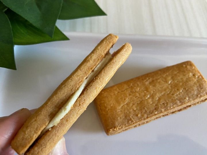 瀬戸内レモンピールが使用されているクリームは、しっかりレモンの爽やかな風味が感じられます。ほんのり瀬戸内レモンピールのほろ苦さが感じられるのもたまらないアクセント!サクほろで崩れやすいクッキーですが、リッチなバター感と甘酸っぱいレモン味のクリームが絶妙にマッチしてとってもおいしいです。