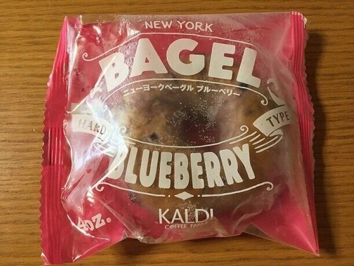 冷凍コーナーで販売されているブルーベリーベーグル!以前プレーンを購入したことがありますが、このブルーベリーもとっても美味しかったんです!