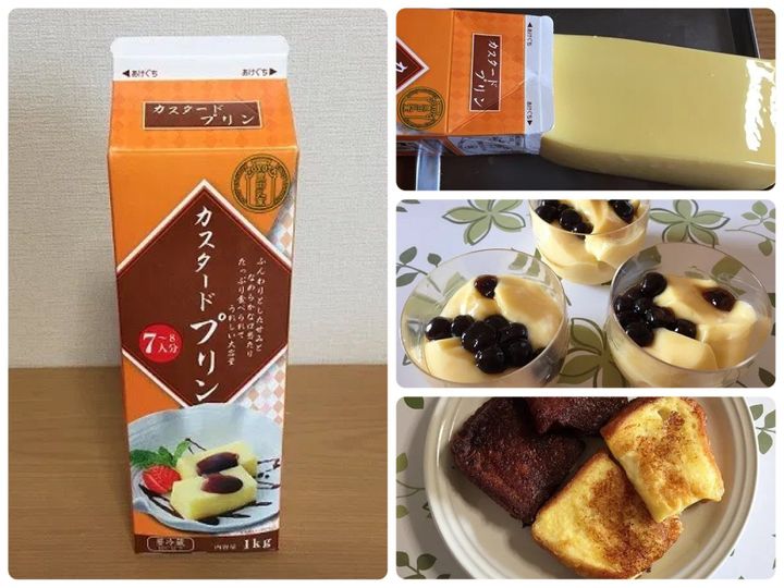 柔らかめでつるんとした食感、王道のカスタードプリンの味わいで美味しいです!業務スーパーで購入したブラックタピオカをトッピングしてみたら、もちもちタピオカとぷるぷるプリンの食感が楽しいおやつに!