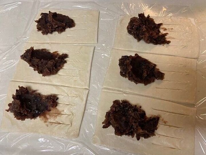冷凍のパイシートにつぶあんをのせて、オーブンで焼きます。