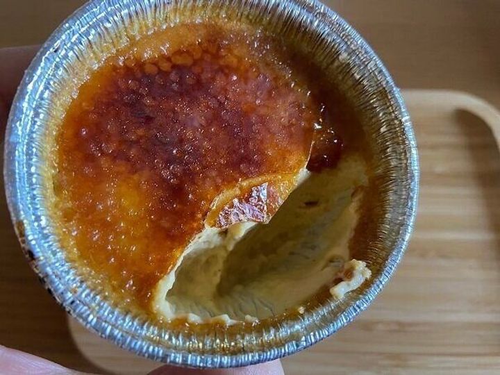 キャラメリゼが意外と分厚くて、スプーンでコツンと軽くたたいてもすぐには割れません・・・笑