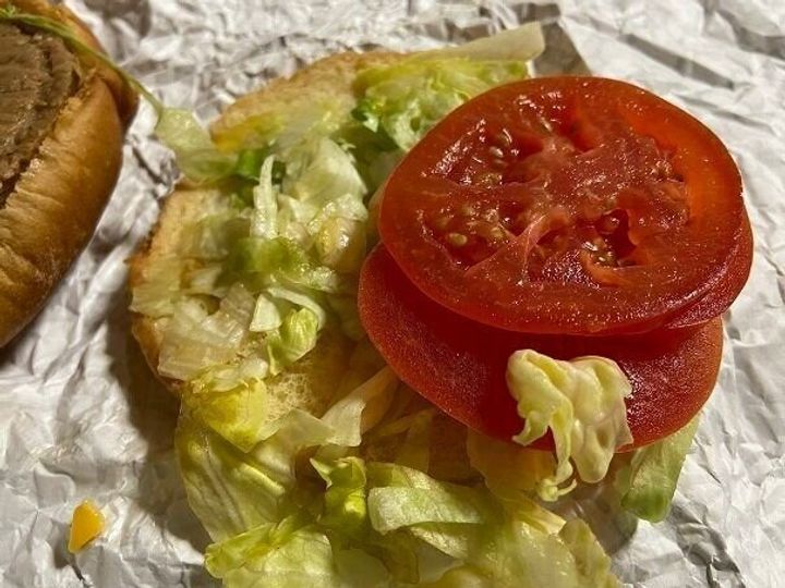 たっぷりのレタスにふっくらとしたバンズにトマトが3枚も!