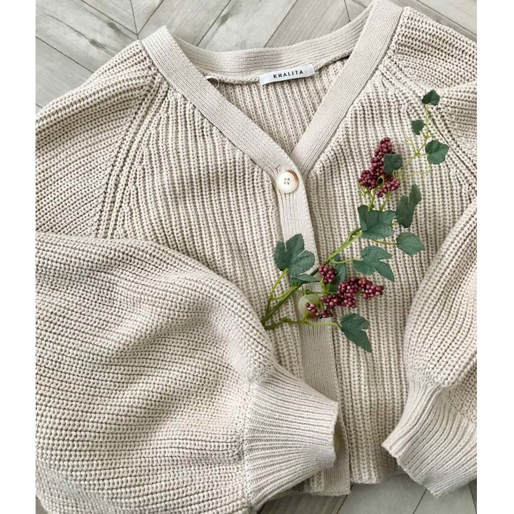 たぽたぽっとした袖がすごく可愛いショート丈のカーディガンです。