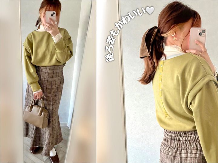 ボタンが後ろにあることで後ろ姿も可愛い印象的に。