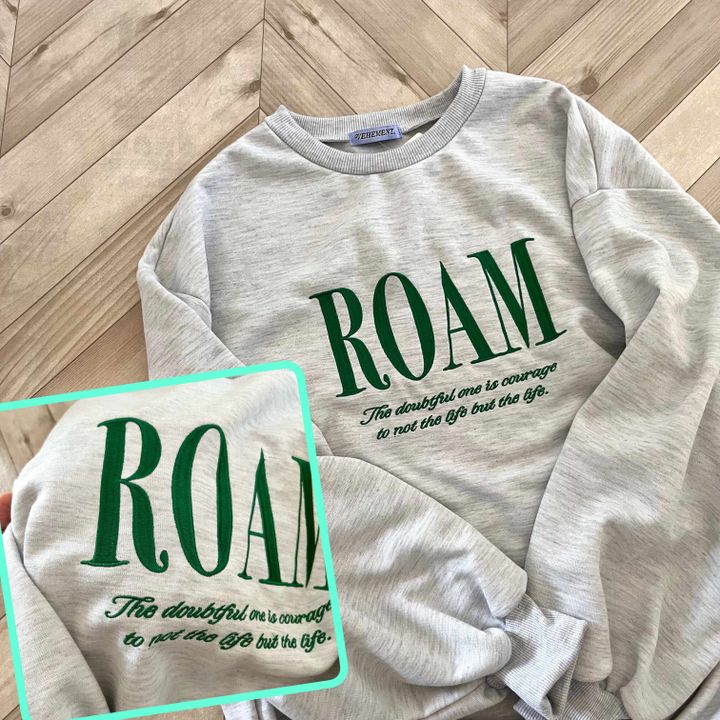 こちらは霜降りのグレー生地にグリーンのロゴのスウェットです。