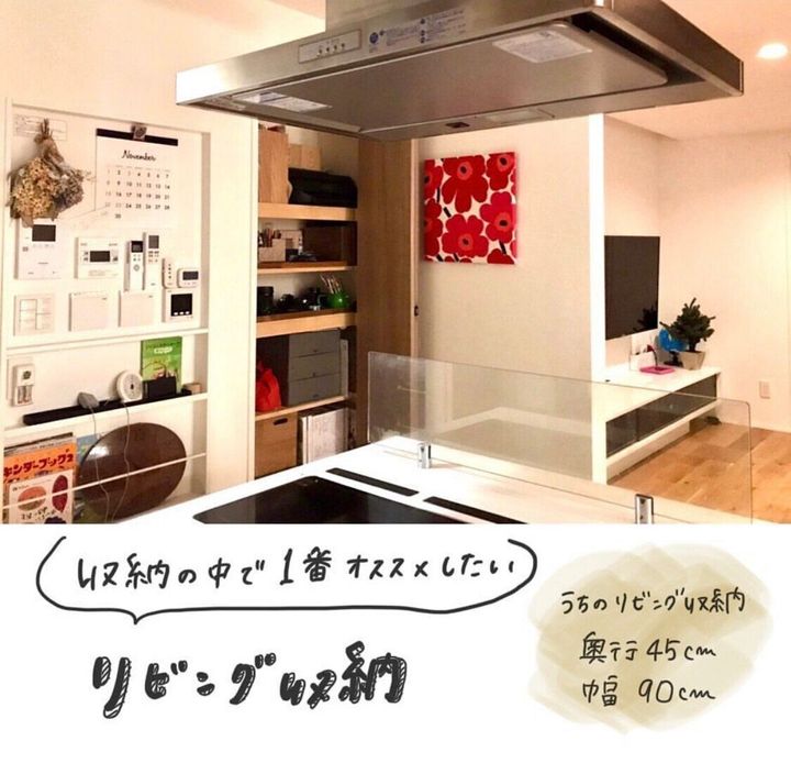 リビング収納のポイントとしては、奥行きを浅めに作ること。