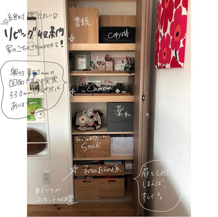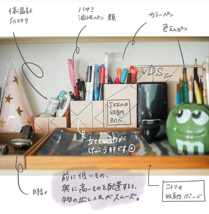 文房具だけでもリビング近くの収納にひとまとめしてみてもいいかもしれません。