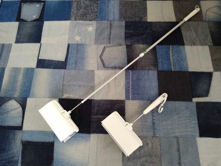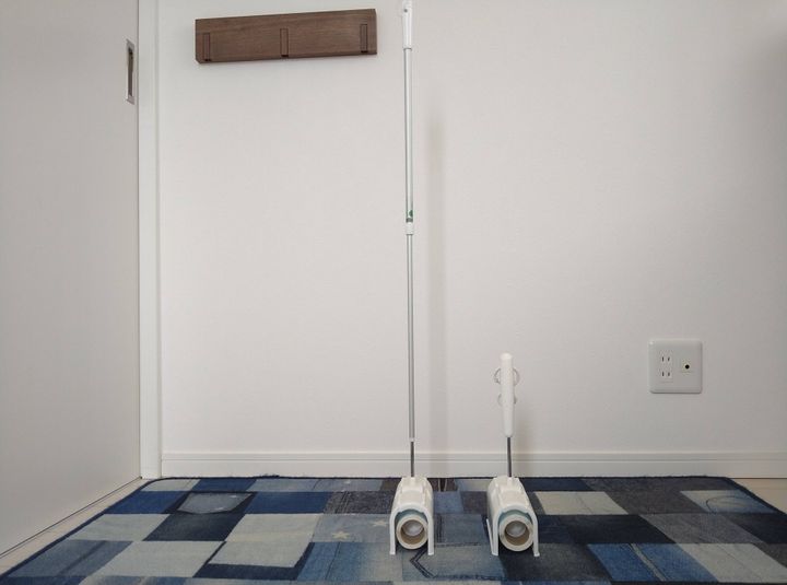右側長い方は2階の寝具に使用しています。広い面積でもラクラク、立ったままコロコロできます。髪の毛や糸ぐすが出やすい洗面脱衣所にもオススメです。