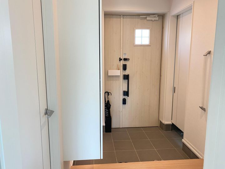 玄関は家の顔といいますが、リビング直結のため帰ってから買い物の荷物を運ぶのにも便利だし、忘れ物をしてもすぐに取りに行けるのでストレスフリー。