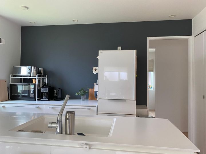 今ではそれほど珍しくないアクセントクロスですが、私が家を建てたころはまだ採用する人は少なかったんです。我が家は建具も壁紙も基本的に白を選んでいるのでこのアクセントクロスはLDKの印象をグッとおしゃれな雰囲気に見せてくれます。