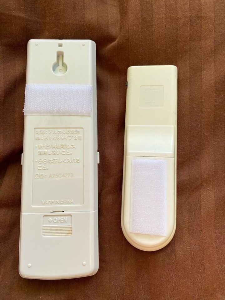 リモコンの裏にマジックテープを貼って、リモコンが反応する場所にピタッとくっつけるだけ。