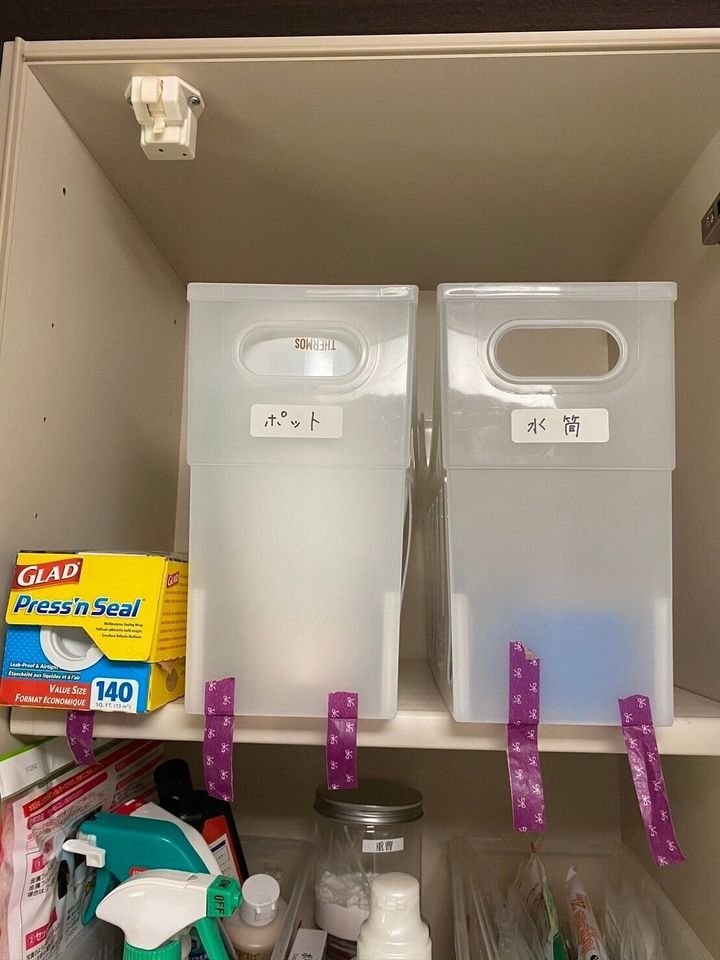 高さのある収納場所もマステを使えば背伸びでとれる。