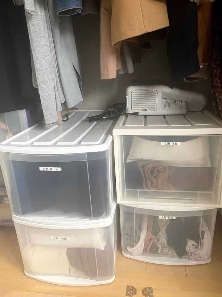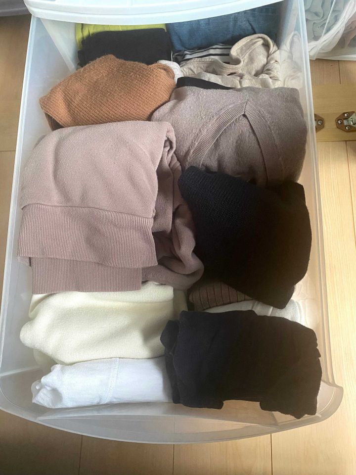 できるだけ、よく着る衣類をこちらのケースに。下の部分には出番の少ない衣類を入れています。
