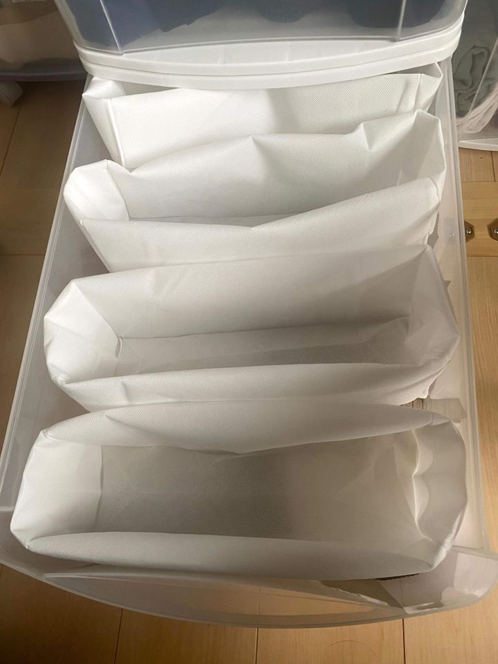 初めは2段にして衣類を重ねて入れていましたが、そうすると下にある衣類が取りにくく次第にぐちゃぐちゃになってしまうのです。