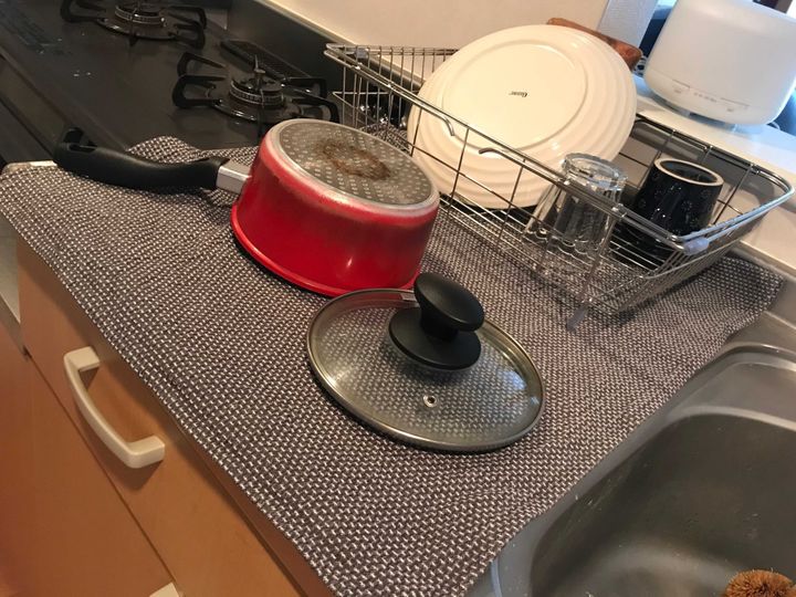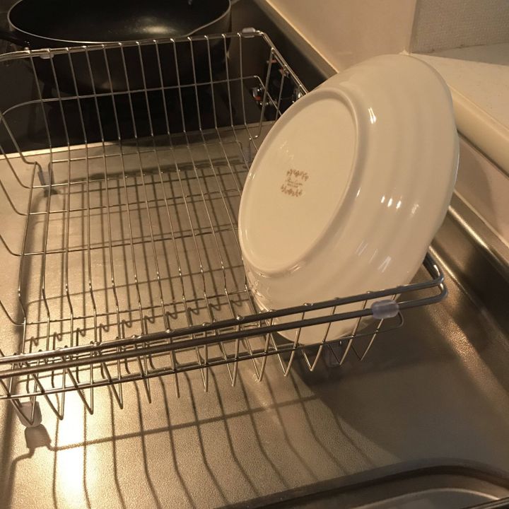 朝昼はこの水切りかご一つで十分ですが、夕飯で使うお皿や鍋が多い時はちょっと足りないことも。