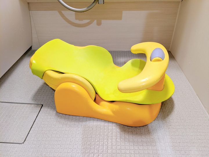 赤ちゃんをお風呂に入れる時、子供用バスチェアに乗せて洗っていましたが、自分がバスチェアに座った状態だと洗いにくいので床に直接座るようになりました。