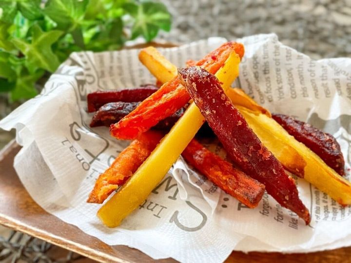 カラフルな根菜をカットしてから下揚げしほんのり塩味に仕上げました。素材本来の甘みと食感が楽しめます。