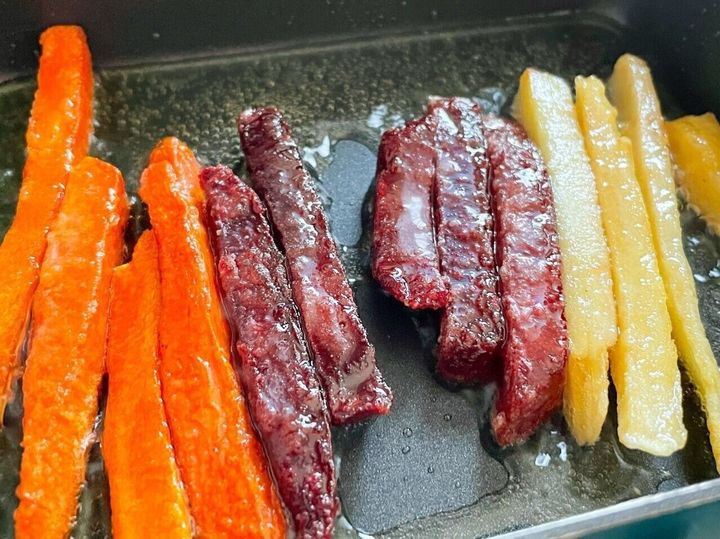 何気なく冷凍食品コーナーを通り、視界にはいったこの商品。はじめはフライドポテトかな?と思い別の棚を見たのですが、「ん!?」と視線を戻しあらためて見ると、それはにんじん、ビーツ、パースニップの3種の野菜がスティック状で素揚げされた冷凍品。