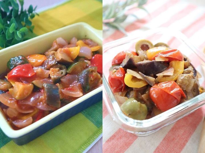 どちらも夏野菜がたっぷりで、つくりおきにもおすすめ。ハーブやビネガーが効いた味付けは、暑い日でもしっかり食べられます。