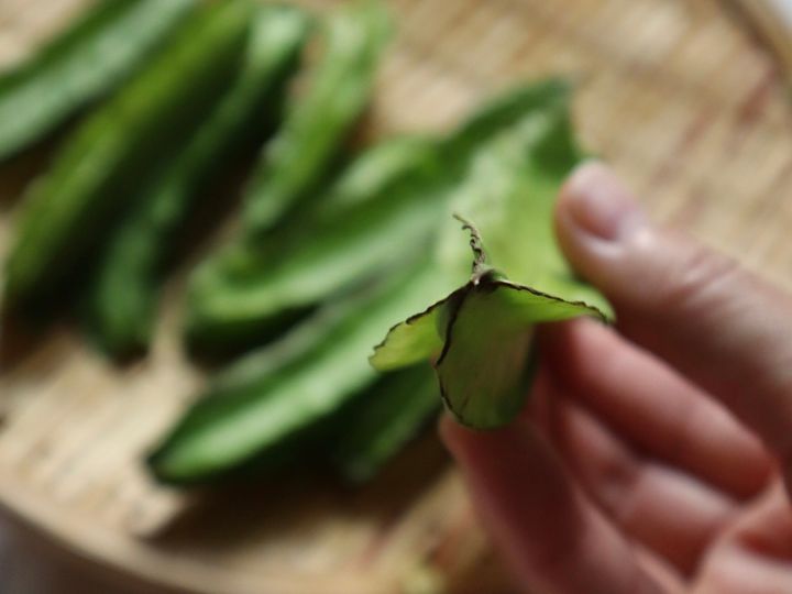 サヤごと食べるので、さやえんどうやいんげんのような感覚で調理していきます。