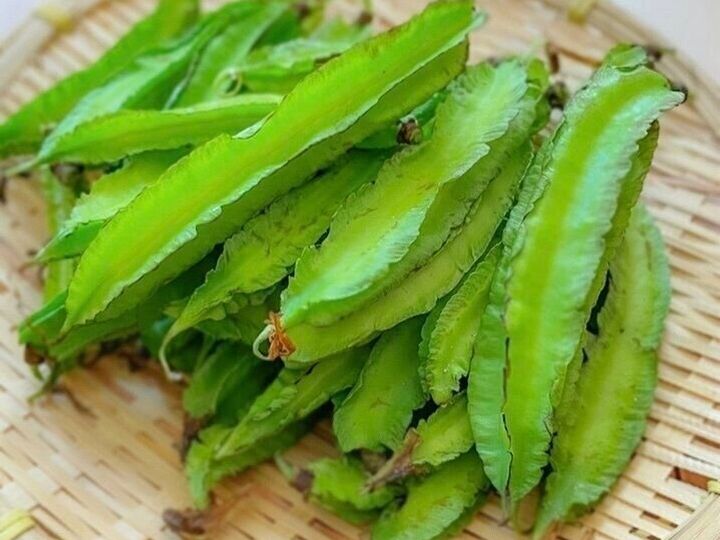 四角豆(シカクマメ)は、マメ科の植物でヒダが4つついていることが特徴。断面が四角い形をしていることから、その名がついています。
