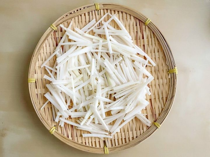 切り干し大根を自分で作るのはハードルが高そうに思われるかもしれませんが、こちらはレンジで水分を飛ばす作りかたです。