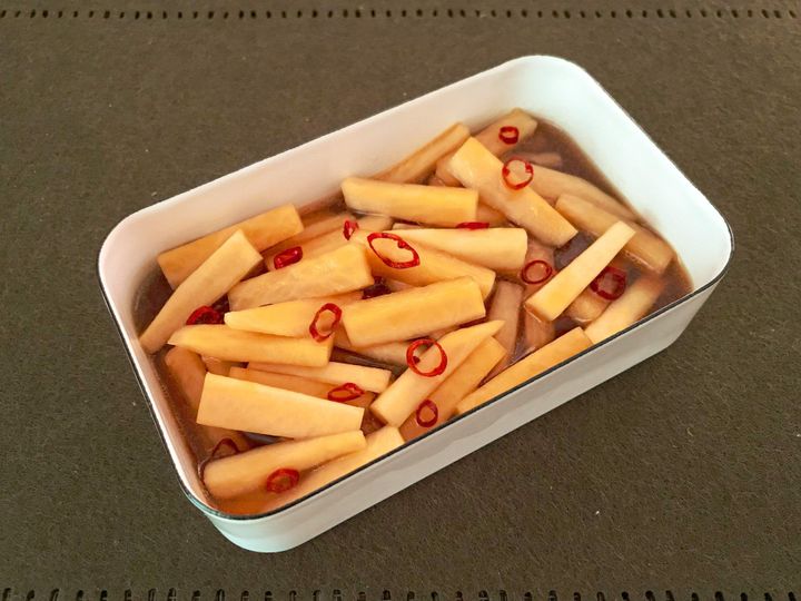 (3) 冷蔵庫で味が染みるまで1〜2時間置く。