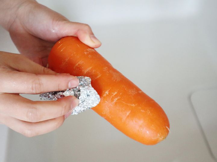 ひげ根が伸びているところも、アルミホイルでササっとこするだけで簡単に取れるので、部分的に皮をむく必要もありません。