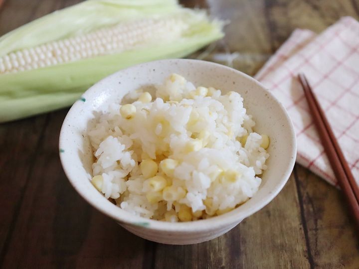 定番のとうもろこしごはんも、白で作ると甘さが際立ちます。